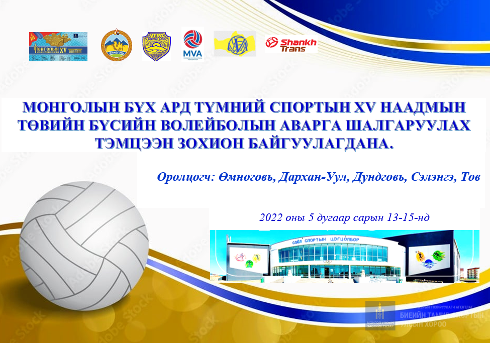 Биеийн тамир, спортын хууль, Засгийн газрын 2021 оны 288 дугаар тогтоолын дагуу Монголын Бүх Ард Түмний Спортын ХV наадмын Төвийн Бүсийн волейболын аварга шалгаруулах тэмцээн Өмнөговь аймагт зохион амжилттай зохион байгуулагдагдаж өндөрлөлөө.